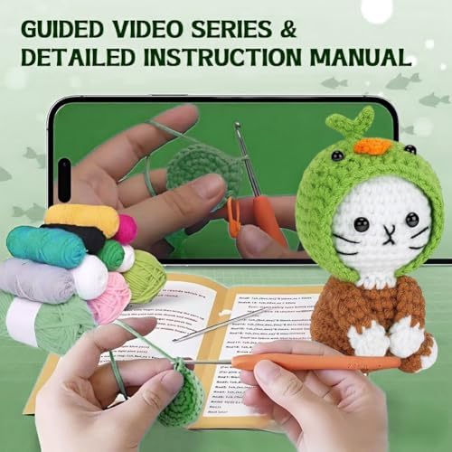 đ§¶ăEasy-to-Follow Video & Photo Tutorialsă: This crochet kit for beginners features clear photo instructions alongside a full-length video tutorial designed for absolute beginners. The tutorials guide you through each stitch and pattern at your own pace, ensuring a smooth learning experience. This cat crochet set makes mastering basic techniques simple and helps complete your first amigurumi project confidently.