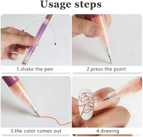 【EFFORTLESS DIY APPLICATION】The nail polish pens are designed for simplicity, making them ideal for both beginners and nail art enthusiasts. There is no need for messy brushes or complicated tools; simply shake the nail art pens, press the tip to start the flow, and glide directly onto the nail. The consistent ink flow of these nail art markers ensures a smooth and even application every time, empowering you to achieve salon-quality nail art designs at home with minimal effort.