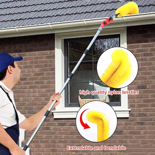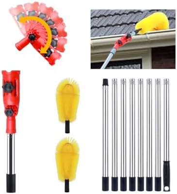 “FOR DEEP CLEANING” 🧹🧼 The gutter cleaning tool, with its adjustable stainless steel pole, reaches into tight corners for deep cleaning. The hard plastic brush removes debris such as leaves and soil, while the soft plastic brush removes more delicate dirt such as cobwebs and dust