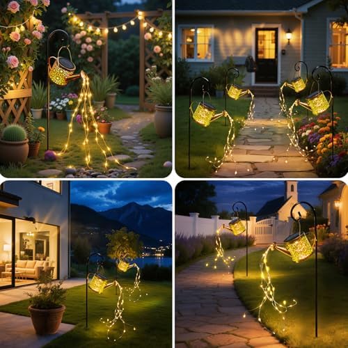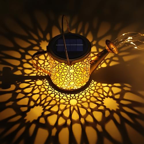 Outdoor Garden Solar Light: This kettle-shaped garden light has 72 high brightness LED beads per string. The pot body is equipped with high brightness warm yellow LED beads, which emit beautiful light and shadow through the hollow design of the pot body. The exquisite pot body can also decorate your garden during the day. When you turn on the switch at night, the flickering string of lights at the pot mouth pours like stars onto your flower bed. The light and shadow emanating from the pot create a romantic atmosphere, perfect for decorating your garden.
