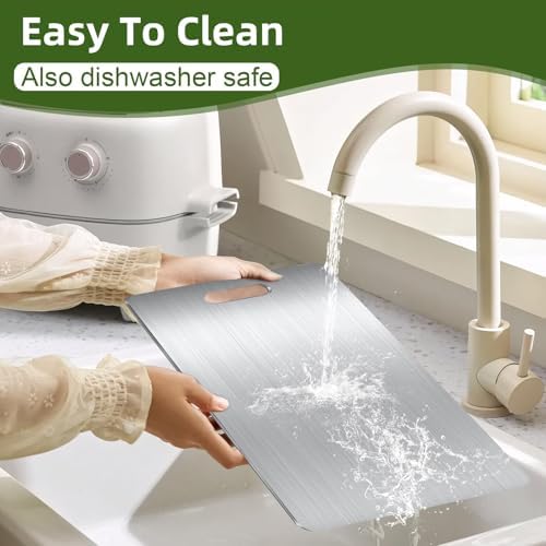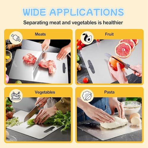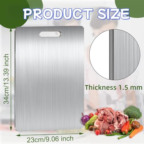 High Quality: Made of solid 13.38 x 9.05 inches1.5mm thick titanium, it is strong enough to withstand heavy chopping, slicing, dicing and sharp knives, does not corrode and rust easily, is reusable and has a long service life.