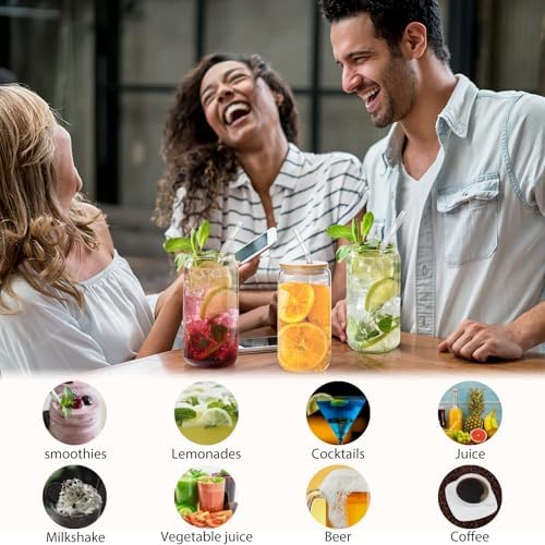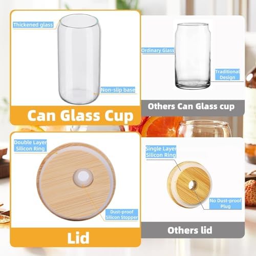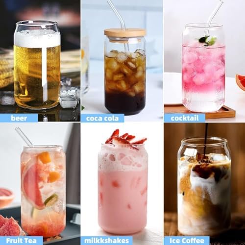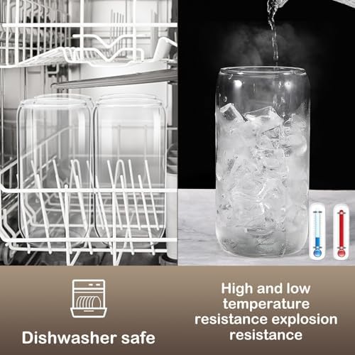 Durable and safe: The can-shaped glassware is made of high-quality durable clear glass, lead-free and BPA-free. it is safe for long-term use. This thick, clear glass can withstand sudden changes in temperature between -68°F and 212°F(Not the lids) , making them dishwasher safe.