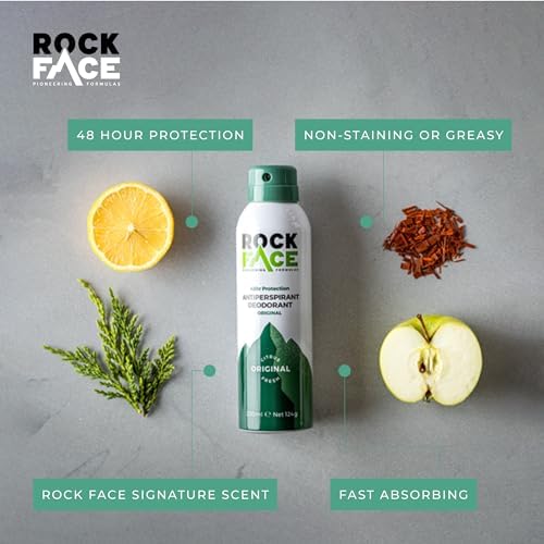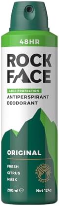 BUILT FOR ACTIVE LIFESTYLES - Rock Face anti-perspirant deodorant is the perfect solution for men who are always on the go. With its specially formulated ingredients, it effectively protects against sweat and odour for up to 48 hours, keeping you feeling fresh and confident throughout the day. Its long-lasting protection is ideal for active lifestyles, whether you're hitting the gym, playing sports, or just going about your daily routine.