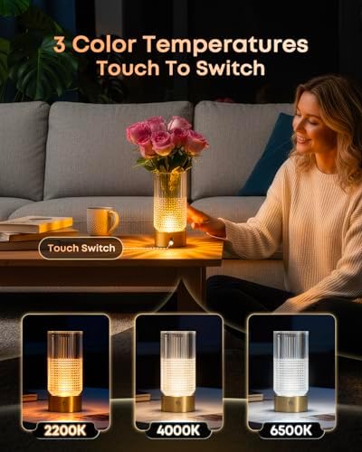 Dimmable & Colour-Changing Lighting - The rechargeable lamps easily adjust brightness and switch between three colours (warm white, cool white, natural light) via touch control, creating the perfect ambiance for any mood or occasion
