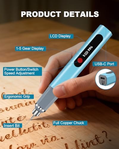 🖊️5-Level Speed Adjustment & Smart Protection: Our Engraver pen easily switch between 5 speeds to match your project needs. The precision carving-engraver built-in overload protection automatically powers off under high resistance, preventing damage and extending the tool’s lifespan